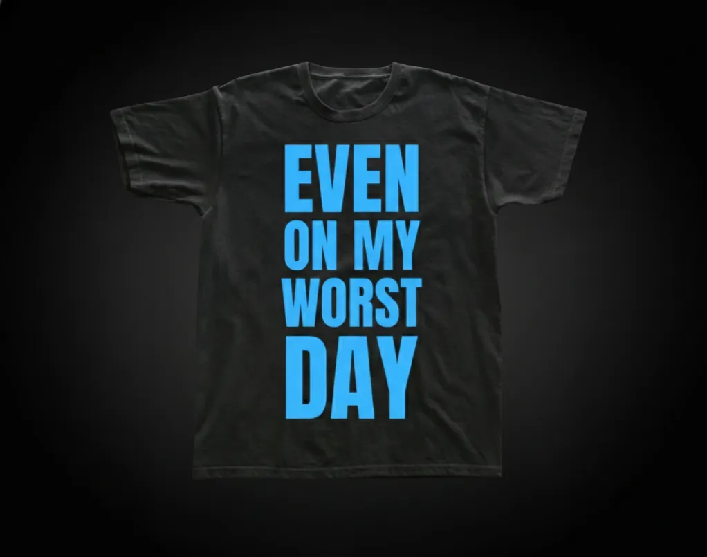 Even on My Worst Day – Baby Blue Chest Logo Black Tee