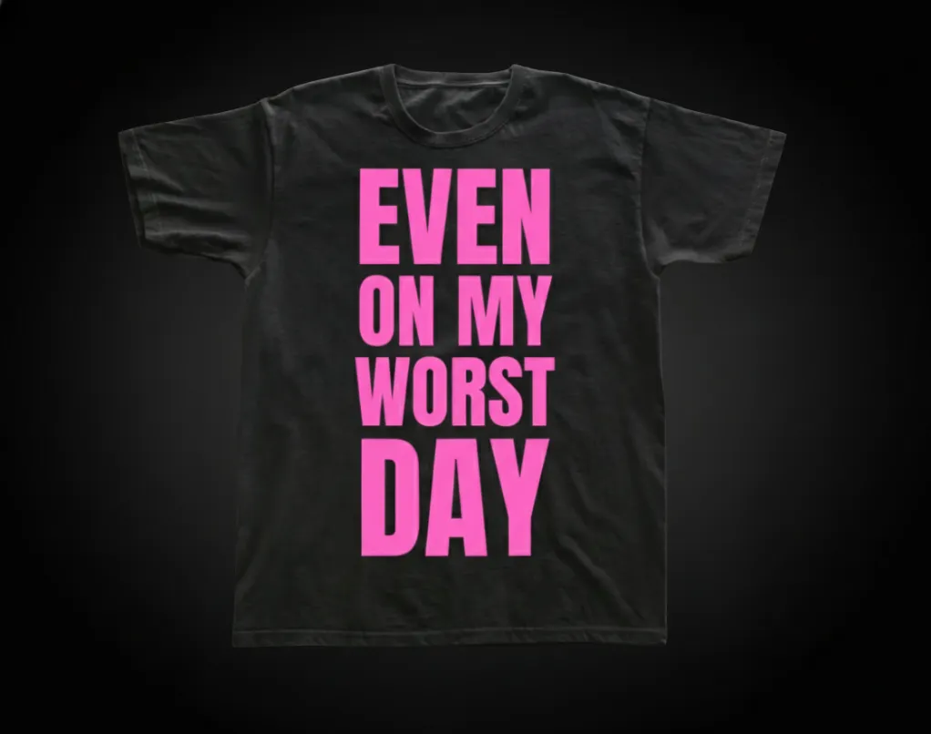 Even on My Worst Day – Baby Pink Chest Logo Black Tee