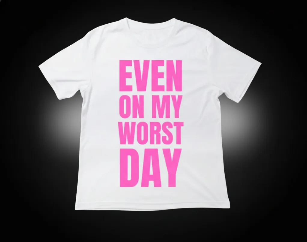 Pink Tee – White Logo Even on My Worst Day – Essential Chest Logo Hot Pink/White